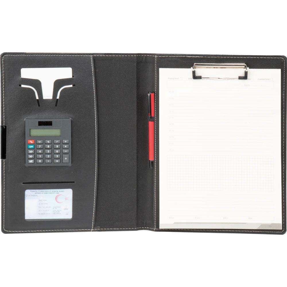 * Deri: Termo * Ebat: 23 x 31 cm * Baskı: Gofre, UV * Kalem Tutucu: Var * Planlayıcı: Var * Karton Kılıf: Var * Hesap Makinası: Var