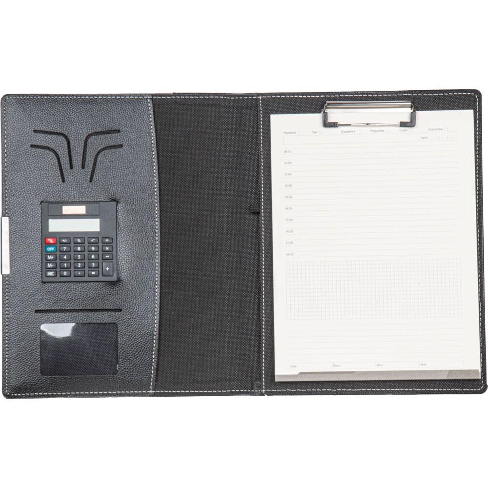* Deri: Termo * Ebat: 24 x 31.5 cm * Baskı: Gofre, UV * Kalem Tutucu: Var * Planlayıcı: Var * Hesap Makinası: Var